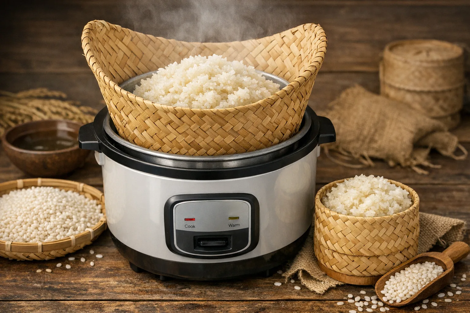 Die Dampfmethode lässt sich gut auf Reiskocher übertragen. Bambusdämpfer passen auf große Reiskocher. Viele verwenden ein feuchtes Baumwolltuch im Dampfkorb. Moderne Multi-Cooker und Geräte mit Steam-Funktion liefern stabilen Dampf. Das Ergebnis ist vergleichbar, wenn Einweichzeit und Dampfphase beibehalten werden.